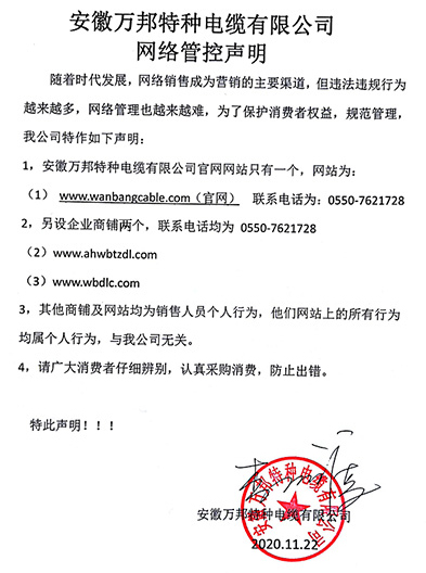 鄭重聲明:安徽萬邦特種電纜有限公司官方網站為:www_wanbangcable_com.markvstheworld.com,除此之外無任何子網站或合作網站,其余均為假冒偽劣。電話:0550-7621728 13485756353 地 址:安徽省天長市滁州高新技術產業開發區經四路29號